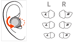 Výmena ušných koncoviek a ich zaistenie na mieste je jednoduché. Ľavá a pravá strana sú označené na slúchadle a na ušnej koncovke.