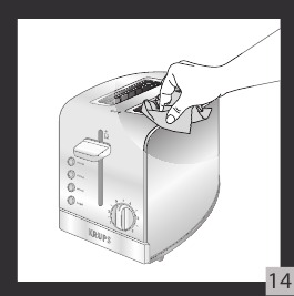- Nepokúšajte sa opekať chleby s prísadami, ktoré sa v hriankovači topia alebo kvapkajú (chleby s polevou alebo plnené chleby) a neopekajte veľmi malé kúsky chleba alebo krutóny, pretože to môže poškodiť spotrebič alebo spôsobiť požiar.