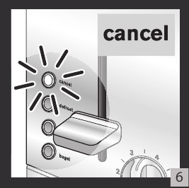 Poznámka: Proces opekania môžete kedykoľvek zastaviť a chlieb vysunúť stlačením tlačidla "Cancel" (zrušiť) na hriankovači.