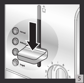 - Vyberte požadované nastavenie zhnednutia a zatlačte páčku na opekanie nadol (pozri časť "Opekanie chleba").