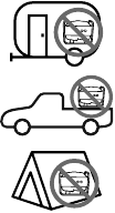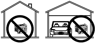 ![]() NIKDY nepoužívajte vnútri domu alebo garáže, AJ KEĎ sú dvere a okná otvorené. | ![]() Používajte IBA VONKU a ďaleko od okien, dverí a vetracích otvorov. |