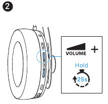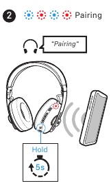 - Stlačte a podržte tlačidlo hlasového asistenta na 5 sekúnd. Slúchadlá sú v režime párovania Bluetooth. LED dióda bliká na modro a červeno.