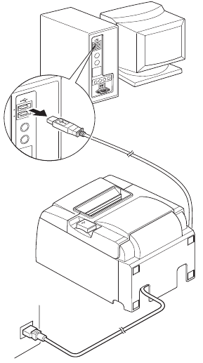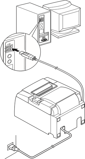 Táto tlačiareň nie je vybavená vypínačom. Po zapojení napájacieho kábla do zásuvky bude tlačiareň prvýkrát zapnutá, keď je USB kábel pripojený k zapnutému počítaču.