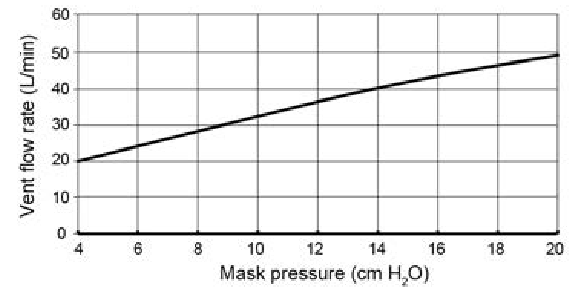 | Krivka tlak-prietok | Maska obsahuje pasívne odvetrávanie na ochranu pred opätovným vdychovaním. V dôsledku výrobných odchýlok sa môže prietok vetrania líšiť.