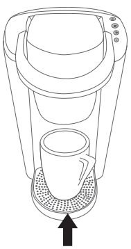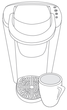 - Če hkrati svetijo lučke za majhno skodelico, majhno skodelico in veliko skodelico, dvignite ročico in odstranite kapsulo K-Cup® (če je prisotna v kavnem aparatu). Zaprite ročico in na pladenj za kapljanje postavite veliko skodelico. Enkrat pritisnite gumb za vklop. Kavni aparat lahko izloči vročo vodo.