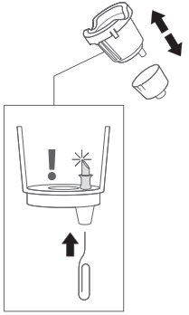 - Napolnite rezervoar za vodo s približno dvema centimetroma čiste vode in ga premešajte (pretresite). Izpraznite rezervoar za vodo, ga napolnite s čisto vodo in ga vrnite v kavni aparat. Po potrebi ponovite zgornje postopke.