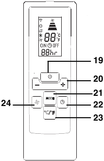 Pritisnite gumb ON/OFF na daljinskem upravljalniku (19) (ko je vklopljena, klimatska naprava začne delovati v istem načinu kot ob zadnjem izklopu).
