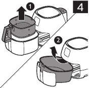 - Odstranite košaro tako, da dvignete ročaj (1). Če želite odstraniti ponev, jo nagnite nazaj in jo dvignite s tirnic (2) (slika 4).