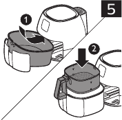 - Postavite ponev v predal (1) in vstavite košaro v ponev (2) (slika 5).