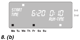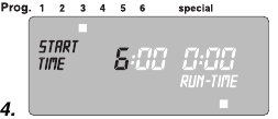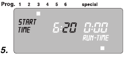 Čase začetka zalivanja in čase zalivanja, ki jih je predprogramiral računalnik za vodo, lahko spremenite, da ustrezajo vašim osebnim zahtevam. Če pa ne upoštevate zgoraj omenjenih časov premora, nobena sprememba, ki jo naredite, ne bo sprejeta in na zaslonu se bo pojavilo sporočilo o napaki (ERROR).