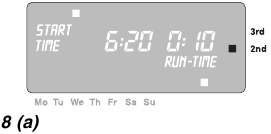 RUN TIME (ČAS DELOVANJA) in čas zalivanja v minutah (nastavljen na 30 minut v tovarni) utripata 5 sekund na zaslonu.