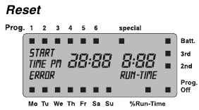 Ker se časi zalivanja zelo enostavno rahlo prekrivajo, še posebej, če so začetki in konci programov zelo blizu drug drugemu, je smiselno RESETIRATI računalnik za vodo in ponovno vnesti podatke o zalivanju, da preprečite pojav sporočila o napaki.
