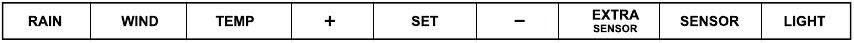 | RAIN & LIGHT (DEŽ & SVETLOBA) | Pridrž;;ite oba gumba skupaj, da ponastavite vse ID-je senzorjev in nastavitve Wi-Fi. |