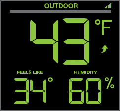 | Temperaturno območje: | -40°F do 140°F (-40°C do 60°C) Opomba: Temperature pod -20°F (-29°C) zahtevajo litijeve baterije v zunanjem senzorju. |