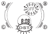 - Indikator DST se prikaže v načinu merjenja časa, alarma in nastavitve kazalcev, kar pomeni, da je poletni čas vklopljen.
