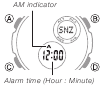 - Spodnji indikatorji se prikažejo na zaslonu, ko sta vklopljena dnevni alarm in urni časovni signal. Vsak indikator izgine, ko je ustrezna funkcija izklopljena.