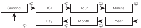 - Ponastavitev sekund na 00, medtem ko je trenutno število v območju od 30 do 59, povzroči, da se minute povečajo za 1. V območju od 00 do 29 se sekunde ponastavijo na 00, ne da bi se spremenile minute.
