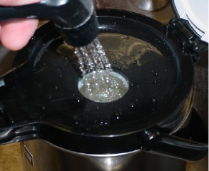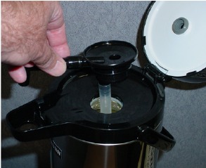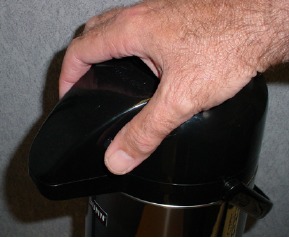 Odprite Airpot tako, da pritisnete gumba na obeh straneh šobe in jo dvignete.