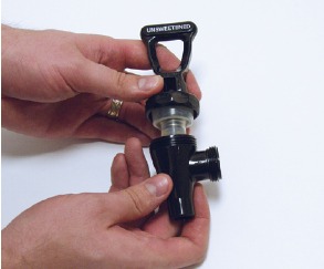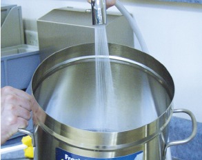 V dozirnik vlijte majhno količino raztopine za razkuževanje. S krtačo s ščetinami (BOM #00674.0000) očistite celotno steblo pipe. Ponovite večkrat.