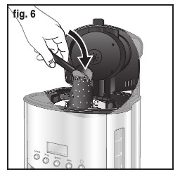 - Za 12 skodelic dodajte približno 2 unči mlete kave. Ne prekoračite nivoja za 12 skodelic Sl. 6.