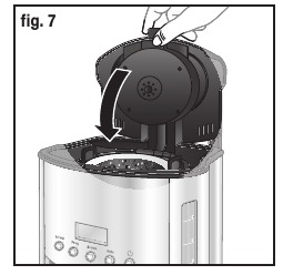 - Če želite odstraniti uporabljeno kavno usedlino, odstranite držalo filtra iz kavnega aparata. Sl. 8.