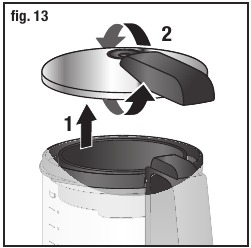 - Pokrov posode za vodo (F) mora biti pravilno nameščen, tako da rob pokrova obdaja gumijast obroč.