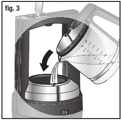 - Napolnite posodo za vodo (G) s potrebno količino vode. Slika 3