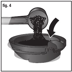 - V trajni filter (D) dajte potrebno količino kave s priloženo žlico (K). Slika 4