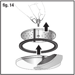 - Po potrebi odvijte vijak na dnu pokrova trajnega filtra (D) in očistite notranjost pokrova. Slika 13 in 14