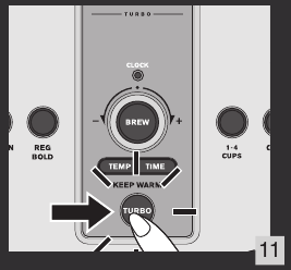 - Ta funkcija bo shranjena v spomin vašega kavnega aparata za prihodnje cikle. To funkcijo lahko ustavite s ponovnim pritiskom na gumb TURBO.