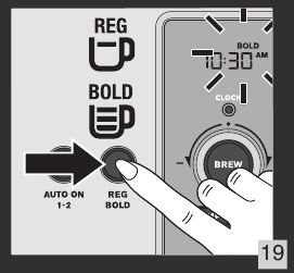 - Pritisnite gumb REGULAR (običajna) ali BOLD (močna) za izbiro intenzivnosti vaše kave. Slika 19.
