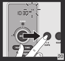 - Nastavite s pritiskom na gumb BREW/control (k) ali privzeto, potrditev se izvede samodejno po približno 5 sekundah.