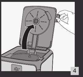 - Odprite pokrov kavnega aparata (b). Slika 4.