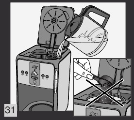 - Za izpiranje aparata zaženite 2 polna cikla po 12 skodelic z vodo, vendar brez kave. Slika 31.