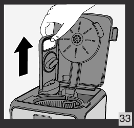 - Za zamenjavo filtra odstranite DuoFilter iz rezervoarja. Slika 33.