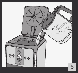 - Napolnite karafo (g) s hladno vodo ali vodo sobne temperature. Vlijte vodo v posodo za vodo (c) Slika 5.
