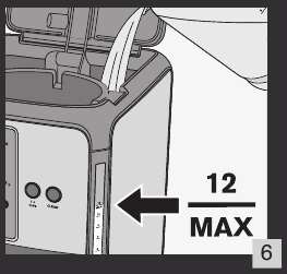 Indikator nivoja vode prikazuje število skodelic. Ne prekoračite 12 skodelic. Slika 6.