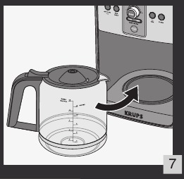 - Da bi se izognili prelivanju, mora biti karafa pravilno nameščena na grelni plošči kavnega aparata, sicer lahko vroča voda ali vroča kava prelijeta.
