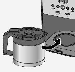 - Da bi se izognili prelivu, mora biti termo posoda pravilno nameščena na podstavek aparata za kavo, sicer lahko povzroči prelivanje vroče vode ali vroče kave.