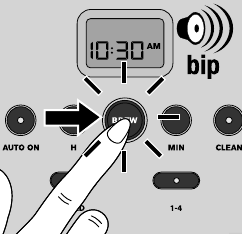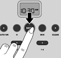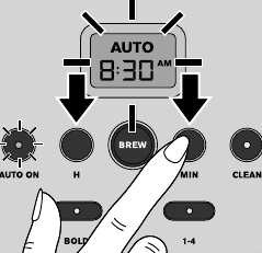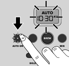 - Pritisnite AUTO ON (SAMODEJNI VKLOP), nato pritisnite BREW (l) (KUHANJE).
