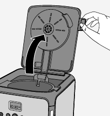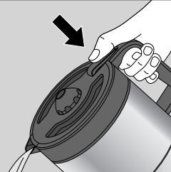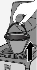 - Za odstranitev uporabljene kavne usedline odstranite filter in držalo filtra iz kavnega aparata.