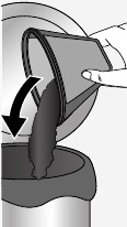 - Če želite natočiti kavo iz termo posode, pritisnite ročico na pokrovu.