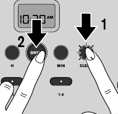 - Pritisnite gumb CLEAN (čisto) (r), ki mu sledi gumb BREW (kuhati) (l), da zaženete cikel odstranjevanja vodnega kamna.