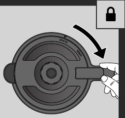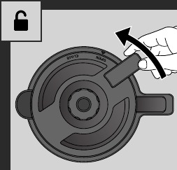 - Odprite pokrov termo posode tako, da ga zavrtite, da se puščica in beseda 'OPEN' (ODPRI) poravnajo.