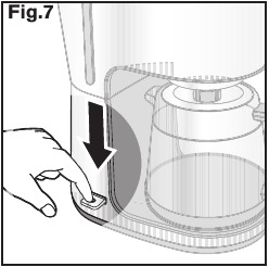 - Pustite, da se polovica raztopine vlije v izotermični vrč (7), nato izklopite aparat s pritiskom na gumb "On / Off" (Vklop/Izklop), slika 7.