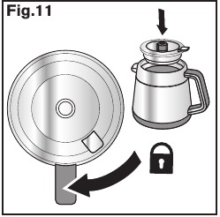 - Pokrov izotermičnega vrča mora biti tesno zaprt v levo, kolikor je mogoče, pri pripravi in ohranjanju kave vroče, slika 11.