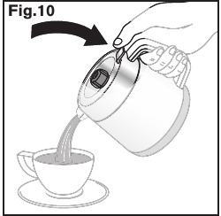 - Za serviranje kave pritisnite ročico na pokrovu izotermičnega vrča, slika 10.