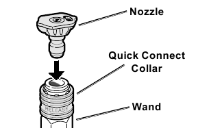 - Vklopite dovod vode, odstranite šobo, usmerite palico v varno smer in držite sprožilec, dokler se iz sistema ne sprosti ves zrak, vsaj 30 sekund. Nato spustite sprožilec, ga zaklenite v varnostni položaj in zamenjajte šobo, preden zaženete motor.