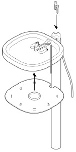 - Uporabite 2 srebrna vijaka, da pritrdite platformo zvočnika na vrh stebla, pri čemer previdno napeljite napajalni kabel. Pritrdite spodnjo ploščo s kanalom napajalnega kabla na zadnji strani in pritrdite platformo na steblo.