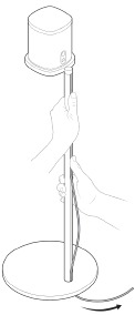 - Rahlo nagnite stojalo naprej, da ovijete odvečni kabel okoli dna osnove. Priključite napajalni kabel zvočnika v steno in uživajte v glasbi!